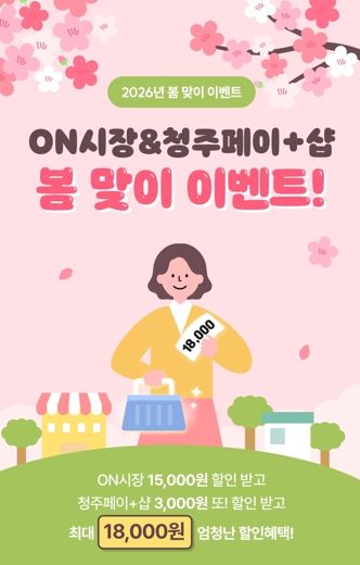 [ 중앙뉴스미디어 ] 청주시는 3월 9일부터 27일까지 청주사랑상품권(청주페이) 앱 내 전통시장 장보기 서비스인 ‘온시장’과 지역 소상공인 온라인몰 ‘청주페이플러스샵’에서 봄맞이 할인쿠폰 제공 이벤트를 진행한다고 7일 밝혔다.