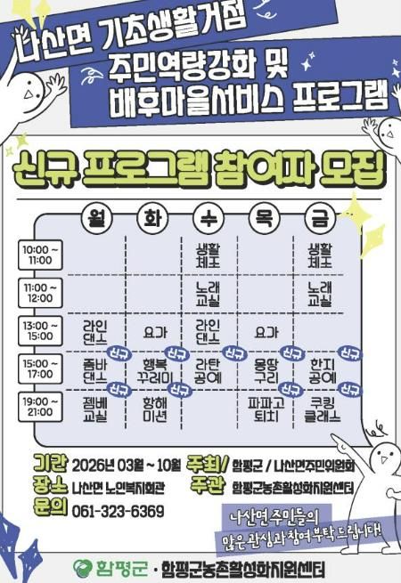 이번 프로그램은 나산면 기초생활거점 조성사업의 일환으로, 주민 삶의 질 향상과 지역 공동체 활성화를 위해 마련됐다.