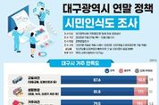 [ 중앙뉴스미디어 ] 대구광역시는 지난해 11월 27일부터 12월 3일까지 만 18세 이상 대구시민 1,001명을 대상으로 시정 전반에 대한 ‘시민인식도 조사’를 실시했다. 이번 조사는 시민들의 다양한 의견을 파악해 향후 시정 운영과 주요 정책 수립에 활용하기 위한 것으로, ▲대구시 거주 만족도 ▲대구시가 역점 추진해야 할 분야 및 핵심사업 우선순위 ▲재정운영 대책 ▲시정 성과 만족도 등을 중심으로 조사했다. 주요 결과는 다음과 같다. 먼저, 대구시 거주 만족도와 관련해 교통, 교육, 생활물가, 거주여건, 경제여건, 문화체육관광 여건, 생활환경 등 시민 삶의 질과 관련된 7개 분야 만족도를 조사한 결과, 교통여건(87.6%), 생활환경(81.8%), 거주여건(79.5%) 등은 높은 만족도를 보였다. 반면 경제여건은 불만족 비율이 62.9%로, 조사 항목 중 유일하게 부정응답이 많았다. 이는 시민들이 일상생활 인프라에 대해서는 전반적으로 만족하고 있지만, 경제 상황은 어렵다고 인식하는 이중적 구조를 보여주고 있다. 다음으로, 향후 역점 추진분야 및 핵심사업에서는 대구시가 가