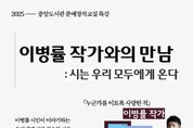 [ 중앙뉴스미디어 ] 아산시 중앙도서관은 오는 20일 오후 2시 중앙도서관 4층 강당에서 깊은 울림의 문학세계로 사랑받는 시인이자 수필가 이병률 작가를 초청해 특강 ‘이병률 작가와의 만남: 시는 우리 모두에게 온다’를 개최한다. 이번 강연은 9월부터 12월까지 중앙도서관에서 운영된 ‘문예창작교실’의 후속 특강으로, 시와 삶을 잇는 감성적 사유를 더 많은 시민과 나누기 위해 마련됐다. 이병률 작가는 『누군가를 이토록 사랑한 적』, 『바다는 잘 있습니다』, 『바람이 분다 당신이 좋다』, 『끌림』, 『혼자가 혼자에게』 등 다수의 작품을 통해 시대의 감정과 아름다움의 본질을 섬세하게 포착해 왔으며, 국내외 다양한 강연을 통해 독자들과 폭넓게 소통해 왔다. 이번 강연에서는 그가 세상을 껴안고 이해하는 방식과 아름다움을 찾아가는 이야기들을 직접 들려주며, ‘왜 지금 우리에게 시가 필요한가?’라는 질문을 중심으로 시가 건네는 울림에 관한 생각을 시민들과 나눌 예정이다. 참가 대상은 아산시민(성인) 100명이며, 참가를 희망하는 시민은 12월 10일(수) 오전 10시부터 아산시립도서관 누리집을 통해 선착순 신청하