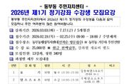 [ 중앙뉴스미디어 ] 영천시 동부동 주민자치위원회는 오는 2월 19일부터 25일까지 ‘2026년 제1기 정기강좌’ 수강생을 모집한다고 밝혔다. 모집강좌는 ▲요가(30명) ▲댄스스포츠(40명) ▲색소폰(20명) ▲기초미술(아크릴화)(20명) ▲포크아트(실용장식미술)(20명) ▲민화(20명) ▲난타(20명) ▲디스코장구(20명) ▲스마트폰활용(20명) ▲라인댄스(30명) ▲웃음힐링체조(40명) ▲탁구 오전반(30명) ▲탁구 저녁반(30명)으로, 총 13개 강좌, 340명을 모집한다. 자세한 모집요강은 영천시 홈페이지에서 확인할 수 있다. 신청은 기간 내 동부동 행정복지센터 방문을 통해 선착순으로 접수할 수 있으며, 수강료는 5개월 기준 25,000원(재료비 등 별도)이다. 최해곤 위원장은 “주민자치센터 정기강좌에 많은 관심을 부탁드린다”며, “앞으로도 주민들의 의견을 적극 반영해 주민자치센터가 생활 속 배움의 공간이 될 수 있도록 힘쓰겠다”고 전했다. 조남철 동부동장은 “주민들을 위해 다양한 강좌를 개설해 주신 주민자치위원회의 노고에 감사드린다”며, “강좌가 안정적으로 운영될 수 있도록 최