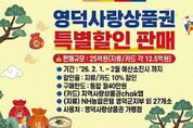 [ 중앙뉴스미디어 ] 영덕군은 설 명절을 앞두고 지역 상권 활성화와 소비 촉진을 위해 2월 1일부터 ‘영덕사랑상품권’을 10% 특별 할인 판매한다. 영덕군은 지난 1월 할인 판매의 높은 관심과 설 명절 수요를 반영해 2월 판매 규모를 기존의 두 배인 25억 원(지류·카드 각 12.5억 원)으로 확대했다. 다만, 보다 많은 이용자가 구매할 수 있도록 1인당 구매 한도를 월 40만 원으로 제한키로 했다. 상품권은 NH농협은행 영덕군지부를 포함한 관내 금융기관 28개 판매대행점에서 구매할 수 있으며, 카드형 상품권은 지역사랑상품권 chak앱을 통해 충전하거나 판매대행점에서 오프라인으로 충전할 수 있다. 황정기 일자리경제과장은 “설 연휴 기간 지역 소비를 촉진하고 더 많은 군민이 혜택을 누릴 수 있도록 25억 원 한도 내에서 할인 행사가 이뤄지는 만큼 예산이 소진되기 전 혜택을 누리시길 바란다”라고 전했다. [뉴스출처 : 경상북도영덕군]