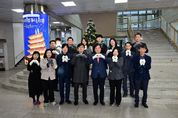 [ 중앙뉴스미디어 ] 김천시청 가톨릭 신우회는 11월 28일 김천시청 1층 로비에서 2025년 김천시청 성탄트리 점등식을 개최하여 따뜻하고 화합된 연말 분위기를 조성했다. 이날 행사에는 김천시청 가톨릭 신우회 회원을 비롯해 배낙호 김천시장, 김천시청 기독 신우회 회원 등이 참석했으며, 가톨릭 신우회 지도신부인 강영목 신부(대신성당 주임)도 참석하여 성탄의 기쁨을 함께 나누었다. 김천시청 청사의 성탄트리는 가톨릭 신우회와 기독 신우회 소속 직원들이 해마다 번갈아 설치해 왔으며, 이번 해에는 가톨릭 신우회에서 준비를 맡아 정성스럽게 꾸몄다. 배낙호 시장은 “성탄트리의 따스한 빛이 김천시청을 찾는 모든 방문객과 직원 여러분께 전해지기를 기원한다.”라며, “김천시민과 직원 여러분 모두 따뜻하고 행복한 연말을 보내시기 바란다.”라고 전했다. 청사 내 성탄트리는 누구나 관람할 수 있도록 개방되어 있으며, 김천시청 방문객 및 직원들이 희망과 평온을 느낄 수 있는 작은 쉼터로서 역할을 할 예정이다. [뉴스출처 : 경상북도김천시]