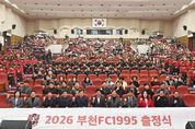 [ 중앙뉴스미디어 ] 부천FC1995가 22일 부천시청에서 2026시즌 출정식을 열고 창단 첫 K리그1 시즌을 앞둔 각오를 시민들과 함께 다졌다. 부천시는 오는 3월 1일 K리그1 개막전을 치르는 구단이 1부리그에서 당당히 경쟁할 수 있도록 지원하는 동시에, 경기 관람과 문화 체험, 소비가 이어지는 ‘스포츠 기반 지역경제 활성화’를 본격화할 계획이다. ◇ 팬·시민 열기로 가득했던 ‘K리그1 첫 시즌 출정식’ 성황 속 마무리 부천FC1995는 이번 출정식에서 사상 첫 K리그1 무대를 앞두고 구단주와 주요 내빈, 프로·유소년 선수단, 시민과 팬들이 한자리에 모인 가운데 출사표를 던졌다. 시청 로비에서는 한지호·백동규·바사니 등 주요 선수들의 팬 사인회와 스톱워치 이벤트, 포토존 등 장외 프로그램이 열려 현장 분위기를 달궜다. 본 행사에서는 김규민·성신·이충현 등 유망주를 꾸준히 배출해 온 유소년 선수단을 시작으로 프로 선수단과 스태프가 차례로 소개됐다. 부천시는 유소년부터 1군까지 이어지는 축구 생태계를 꾸준히 강조해 왔으며, 지난해에는 부천FC1995 U-18팀이 제47회 문화체육관광부장관배 전국고등학교 축구대회