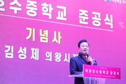 [ 중앙뉴스미디어 ] 의왕시 백운밸리 지역에 신설된 백운호수중학교의 준공식이 24일 백운호수중학교 체육관에서 개최됐다. 의왕백운프로젝트금융투자(주)(의왕백운PFV(주)) 주최로 열린 이날 준공식에는 김성제 의왕시장, 임태희 경기도 교육감, 김학기 의왕시의회 의장과 도·시의원, 의왕백운피에프브이(주) 김양묵 대표이사, 의왕백운밸리에이엠시(주) 이성훈 대표이사 등 주요 내빈과 지역주민 400여 명이 참석해 자리를 빛냈다. 이번 준공식은 학교 설립을 위해 힘써 온 관계자와 지역 주민들이 한 자리에 모여 그동안의 결실을 함께 나누고 축하하는 뜻깊은 행사로 마련됐다. 의왕시 백운밸리 일대는 주거단지 조성과 함께 인구가 지속적으로 증가하고 있는 지역으로, 그간 중학교 부재에 따른 학생들의 원거리 통학 문제가 꾸준히 제기돼 왔다. 이에, 시는 ‘중학교 신설’이라는 지역 숙원사업 해결을 위해 다각적인 방안을 검토해 왔으며, 2023년 11월 의왕시·군포의왕교육지원청·의왕백운피에프브이(주) 간 3자 업무협약을 체결함으로써 학교 설립이 본격 추진됐다. 협약을 통해 시에서는 백운호수 초등학교 인접 유치원
