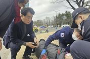 [ 중앙뉴스미디어 ] 하은호 군포시장이 길에 쓰러진 할머니를 발견하고 신속한 신고와 응급처치를 통해 무사귀환을 도와 화제다 하은호 시장은 27일 오전 10시경 관내 출장길에 산본중앙공원 사거리 KT옆 공원에 쓰러진 할머니를 발견했다. 하 시장 일행은 즉시 차에서 내려 119 신고를 하고 할머니를 편안한 자세로 높혀 상태를 살피며 의식을 잃지 않도록 간호했다. 즉시 출동한 119구조대는 할머니의 의식을 잃지 않도록 주의하며 응급조치를 했고 상태가 호전되어 구급차를 타고 귀가한 것으로 알려졌다. 하은호 시장은 유난히 재난 구조 현장과 가깝다. 고교생이었을 때 안양 일대에 대홍수가 났을 때 대림대학교 앞에서 버스 안으로 물이 차오르는 현장에서 사람들을 구조한 적이 있다. 지난 2022년에는 산본역 피트인 사거리에서 횡단보도 옆에 쓰러진 노인을 발견하고 이번처럼 신속하게 신고와 구조를 통해 무사귀환을 도왔다. 하은호 군포시장은 “해빙기 사고 예방을 위해 직원들과 회의를 마치고 나서는 길이었다”며 “봄이 오는 길목에서 어르신들의 각별한 주의가 필요하다”고 말했다.