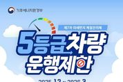 [ 중앙뉴스미디어 ] 파주시는 제7차 계절관리제 기간인 2025년 12월부터 2026년 3월까지 배출가스 5등급 차량에 대한 단속을 실시하고 있다. 제7차 계절관리제 운행 제한은 고농도 미세먼지가 자주 발생하는 시기인 12월부터 3월까지(주말 및 공휴일 제외) 수도권과 6대 특별·광역시(부산, 대구, 광주, 울산, 세종)를 출입하는 전국 배출가스 5등급 차량을 대상으로 시행된다. 운행 제한을 위반할 경우 1일 10만 원의 과태료가 부과된다. 다만, 저감장치 부착이 불가능한 차량 중 기초생활수급자 및 차상위계층 소유 차량, 소상공인 등록 차량, 긴급자동차, 장애인 차량, 국가유공자 차량 등은 과태료 부과 대상에서 제외된다. 다만, 저감장치 장착 불가 차량 중 기초생활수급자, 차상위계층 및 소상공인 등록차량, 긴급자동차, 장애인, 국가유공자 차량 등은 부과 대상에서 제외된다. 파주시는 장곡 검문소에 설치된 단속카메라를 통해 운행 제한 위반 차량을 단속하고 있으며, 적발된 차량에 대해서는 관련 절차에 따라 과태료를 부과할 예정이다. 또한, 시는 5등급 차량의 저공해 조치를 위한 노후 경유차