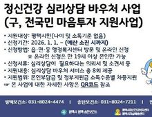 [ 중앙뉴스미디어 ] 평택시에서는 2025년 전국민 마음투자 지원사업의 효과성을 평가하고 서비스 질적 향상을 도모하기 위하여 서비스 이용 시민을 대상으로 만족도 조사를 진행했다. '전국민 마음투자 지원사업'은 우울·불안 등 정서적 어려움이 있는 시민에게 대화 기반의 심리상담 이용권(바우처) 서비스를 총 8회기 지원하는 국가 정신건강 지원사업이다. 평택시는 2025년 한해 965명의 시민이 심리상담 서비스를 이용했으며, 지난 1월 5일부터 18일까지 이용자 전원을 대상으로 익명으로 진행한 만족도 조사에서 269명의 이용자가 응답했고, 서비스 전문성과 만족도 분야 등 총 10개 문항에서 100점 만점에 평균 90.3의 높은 점수로 긍정적인 평가를 나타냈다. 특히 서비스 재이용 의사 여부를 묻는 문항에 91.8점으로 가장 높은 평가를 받았고, 타인에게 서비스 추천 여부 91.7점, 상담 결과 정신건강에 도움이 됐다는 90.6점으로 나타났다. 이용 소감으로는 “속마음을 털어놓으니 마음의 짐이 줄어든거 같다”, “불안이 사라지고, 안정감을 되찾았다”, “화를 다스리고 다른 사람들과 화합하는 방법을 깨우치게