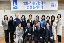 [ 중앙뉴스미디어 ] 영통구는 지난 4일 영통구청 상황실에서 2026년 2월 영통구 통장협의회 월례회의를 개최하고, 시·구정 주요 현안과 주민 생활과 밀접한 행정 시책을 공유하는 시간을 가졌다. 이날 회의에는 관내 12개 동 통장협의회장이 모두 참석해 지역 현안에 대한 의견을 나누고, 2026년 2월 중 추진되는 시·구정 주요 홍보사항을 전달받았다. 회의에서는 △2026년 ‘폭싹 담았수다! 시민의 민원함’ 추진 △2026년 수원 새빛 생활비 패키지 지원 △2026년 ‘새빛신문고’ 운영 △새빛톡톡 제휴 할인 이벤트 등 시민의 일상생활에 실질적인 도움이 되는 다양한 정책과 사업들이 중점적으로 안내됐다. 특히 이번 회의를 통해 각 동 통장들이 해당 정책의 취지와 내용을 정확히 이해하고, 이를 주민들에게 신속하고 효과적으로 전달해 줄 것을 당부했다. 아울러 주민 불편 사항과 생활 속 민원을 현장에서 가장 먼저 접하는 통장들의 역할이 더욱 중요함을 강조하며, 지역사회와 행정을 잇는 가교 역할을 지속해 줄 것을 요청했다. 장수석 영통구청장은 “통장님들은 주민 곁에서 가장 먼저 듣고, 가장 먼저 움직이는 지역의 든든한 버팀