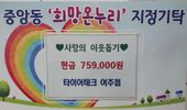 [ 중앙뉴스미디어 ] 24일 세종대왕면 농지심의위원회에서 관내 어려운 이웃을 위한 성금 200만원을 세종대왕면 지역사회보장협의체에 기탁했다. 세종대왕면 농지심의위원회는 관내 어려운 이웃들을 위해 성금을 기탁하고 나눔 운동에 동참하여 따뜻한 마음을 전했다. 세종대왕면 농지심의위원회 임형선 회장은 “기부한 성금이 소외된 이웃들에게 조금이나마 도움이 되길 바란다.”며 “앞으로도 이웃사랑을 몸소 실천하며 지역사회에 도움이 되도록 함께 마음을 나누겠다.”고 전했다. 홍광래 세종대왕면장은 “어려운 이웃을 위해 희망과 사랑으로 나눔운동에 앞장서 주시는 마음 감사드린다.”며 “기탁해 주신 성금은 복지 지원이 필요한 위기가구를 위해 소중하게 사용하겠다.”고 전했다.