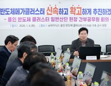 [ 중앙뉴스미디어 ] 용인특례시는 6일 SK하이닉스의 첫 번째 팹(Fab) 건설공사가 진행 중인 처인구 원삼면 용인 반도체 클러스터 일반산업단지 현장을 방문해 2026년 첫 현장 간부공무원 회의를 진행했다. 회의는 용인 반도체 클러스터 일반산업단지 조성 현황을 현장에서 직접 점검하고, 개발에 따른 도로·전력·용수 등 기반시설 확충과 주민 불편 해소 방안을 논의하기 위해 열렸다. 이곳엔 향후 30여년간 SK하이닉스가 600조 원을 투자한다. 회의에는 이상일 시장을 비롯해 제1·2부시장, 실·국장 등 간부공무원과 반도체 관련 부서 관계자 등 30여 명이 참석했다. 이상일 시장은 “용인의 반도체 프로젝트는 특정 지역의 이해관계를 넘어 대한민국의 미래 경쟁력과 직결된 국가 핵심 전략사업”이라며 “최근 용인 이동·남사읍 첨단시스템반도체 국가산단과 원삼면 용인 반도체 클러스터 일반산단을 겨냥한 지방 이전 논란에 대해 중앙정부 차원의 명확한 정리가 이뤄지지 않음에 따라 지역 간 갈등이 커지는 상황이 매우 안타깝다”고 밝혔다. 그러면서 “6월 지방선거를 앞두고 일부 정치인이 선동함에 따라 혼란이 확산되고 있지만,