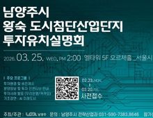 [ 중앙뉴스미디어 ] 남양주시는 오는 25일 서울 서초구 엘타워에서 ‘왕숙 도시첨단산업단지 투자유치설명회’를 개최하고, 첨단산업 투자거점으로 급부상하는 시의 투자환경을 기업에 소개한다고 밝혔다. 이번 설명회에서는 왕숙 도시첨단산업단지를 중심으로 시의 우수한 투자환경을 알리고 산업단지와 주거·교통 인프라가 연계된 직주근접형 도시 조성 방향을 제시한다. 특히 전국 226개 기초지자체 가운데 유일하게 GTX를 포함한 10개 철도노선이 구축되는 교통망을 바탕으로, 서울과 수도권 주요 거점을 연결하는 교통 인프라와 기업 활동에 유리한 입지 여건을 소개한다. 또한 조성원가 토지공급과 세제지원 등 기업 부담을 낮추는 다양한 지원제도도 함께 안내할 예정이다. 행사는 김영록 넥스트챌린지 대표(사단법인 벤처기업협회 부회장)의 기조강연으로 시작한다. 이어 시의 투자 강점 소개와 함께 우리은행, 카카오 등 앵커기업의 대규모 투자 사례 발표가 진행된다. 발표에서는 기업들이 남양주 투자를 결정한 배경도 함께 공유될 예정이다. 사업 시행사인 한국토지주택공사(LH)는 왕숙 도시첨단산업단지 분양계획과 공급 일정, 왕숙 1·2지구