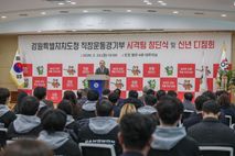 [ 중앙뉴스미디어 ] 강원특별자치도는 2월 23일 오후 3시 도청 별관 대회의실에서 ‘강원특별자치도청 사격팀’ 공식 창단식을 개최했다. 이번 창단은 1987년 펜싱팀 창단 이후 12번째이자, 2020년 루지팀 창단 이후 6년 만에 새롭게 출범한 도청 직장운동경기부다. 이로써, 도내 사격 실업팀은 도청, 정선, 고성 등 총 3개 팀으로 확대됐으며, 유소년부터 실업팀까지 이어지는 계열화 체계를 더욱 공고히 하게 됐다. 이는 지역 인재가 타시도로 유출되지 않고 고향에서 선수 생활을 이어갈 수 있는 기반을 마련했다는 점에서 의미가 크다. 또한, 선수단 전원이 강원 연고자로 구성돼 지역 체육의 성장 모델을 보여주고 있으며, 강원의 체육 인프라 속에서 성장한 선수들이 강원특별자치도의 이름을 달고 승리의 과녁을 정조준하게 됐다. 도는 최근 제106회 전국체전 종합 6위 달성, 전국장애인동계체전 사상 첫 종합우승 등 강원 체육의 상승세를 이어가고 있다. 사격팀은 이러한 흐름을 바탕으로 제107회 전국체육대회에서 ‘종합 6위 수성’의 핵심 동력이 될 것으로 기대된다. 아울러 2