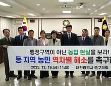 [ 중앙뉴스미디어 ] 대전 중구의회 유은희 의원은 26일 제2차 본회의에서 대전광역시 중구 동 지역 농민에 대한 역차별 해소를 촉구하는 건의안을 대표 발의했다. 유은희 의원은 “2024년 기준 대전광역시에 농업경영체로 등록된 농업인은 약 2만 9천여 명이며, 이 가운데 중구에는 약 4천 3백여 명의 농업인이 있다”며, “이는 비슷한 규모의 자치구인 동구나 대덕구보다도 많은 수치임에도, 행정구역이 ‘동’이라는 이유로 각종 농업·농촌 정책에서 소외되고 있다”고 지적했다. 이어 “건강보험료 경감, 귀농·영농 정착 지원, 대학입시 농어촌 특례전형 등에서 동 지역 농민들이 실제 농촌 생활을 하고 있음에도 ‘도시 거주자’로 분류돼 지원 대상에서 제외되는 사례가 반복되고 있다”며, “이는 읍·면 중심으로 설계된 현행 제도에서 비롯된 구조적인 문제”라고 설명했다. 유은희 의원은 건의문을 통해 ▲중앙정부는 농촌지역 정의를 읍·면으로 한정한 관련 법령을 개선해 동 지역 농민도 농촌 정책의 대상에 포함할 것 ▲대전광역시는 도시농·농촌형 동 지역 실태조사와 중장기 계획을 수립하고 예산을 편성할 것 ▲대전 중구는 중구형 도시농 지원계