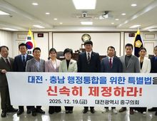 [ 중앙뉴스미디어 ] 대전 중구의회는 19일 열린 제270회 제2차 정례회 제4차 본회의에서 김석환 의원이 대표 발의한 ‘대전충남 행정통합 특별법 조속한 국회 심의·의결 촉구 결의안’을 채택했다. 이번 결의안은 초저출산·고령화와 수도권 일극화로 심화되는 지방 소멸 위기에 대응하고, 대전과 충남의 행정통합을 통해 강력한 광역경제권을 구축함으로써 국가균형발전의 전기를 마련해야 한다는 취지에서 발의됐다. 김석환 의원은 제안설명을 통해 “대전과 충남은 이미 생활권과 경제권, 교통망을 공유하는 하나의 통합권역임에도 행정구역 분리로 인한 중복 행정과 정책 비효율을 오랜 기간 감내해 왔다”며, “이제는 개별 지자체의 노력만으로는 지방 소멸이라는 국가적 위기를 극복할 수 없는 상황”이라고 강조했다. 결의안에는 국회가 현재 계류 중인 '대전충남통합특별시 설치 및 경제과학수도 조성을 위한 특별법'을 조속히 심의·의결할 것과, 정부와 국회가 대전·충남 행정통합을 대한민국 경쟁력 재편의 핵심 전략으로 인식하고 실질적인 제도·재정 지원에 즉각 나설 것을 촉구하는 내용이 담겼다. 특히 해당 특별법은 총 296개 조항에 걸쳐