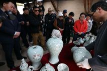 [ 중앙뉴스미디어 ] 1300˚C를 견딘 청자의 빛은 영롱하기만 하다. ‘흙과 불 그리고 사람의 이야기’를 주제로 열리고 있는 제54회 강진청자축제. 지난 22일 강진군 대구면 고려청자박물관 제2호가마에서 화목가마 요출행사가 열린 가운데 옛 전통방식 그대로 소나무 장작을 이용해 48시간 동안 구워낸 청자를 꺼내고 있다. [뉴스출처 : 전라남도강진군]