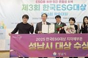 [ 중앙뉴스미디어 ] 성남시는 ‘제3회 한국 이에스지(ESG) 대상’ 시상식에서 지방자치단체 이에스지(ESG) 부문 대상을 받았다고 11일 밝혔다. 한국 이에스지(ESG) 대상은 사단법인 한국ESG학회가 환경(Environmental), 사회(Social), 투명경영(Governance) 분야에서 탁월한 성과를 거둔 지자체 등 공공기관과 기업, 학교, 개인 등에게 주는 상이다. 성남시는 앞선 9월 ‘이에스지(ESG) 특별시 성남’ 비전을 선포한 이후 ‘환경과 사회’, ‘사회와 투명경영’ 등 분야 간 연계 효율을 높이는 융합형 이에스지(ESG) 접근법을 제시해 높은 평가를 받았다. 해당 사업으로 △기후테크 중소기업 육성(환경) △모든 시민 무료 독감 예방접종 지원(사회) △이에스지(ESG) 시민대학 프로그램 운영(투명경영) △맨발 황톳길 11곳 운영(환경+사회) △이에스지(ESG) 환경 분야 상생 협업 추진(환경+투명경영) △나눔 명예의 전당 운영(사회+투명경영) 등이 꼽힌다. 시 관계자는 “이번 수상은 성남시만의 이에스지(ESG) 특화사업을 추진하기 위해 모든 공직자가 함께 노력해 온 결과”라면서