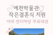 [ 중앙뉴스미디어 ] 예천박물관은 오는 3월부터 야외 잔디마당을 ‘작은결혼식’ 장소로 무료 대관한다고 밝혔다. 이번 사업은 과도한 결혼 비용과 형식 중심의 예식 문화에서 벗어나, 실속 있고 가치 중심의 결혼식을 장려하기 위해 마련됐다. 특히 자연 친화적이고 개방감 있는 예천박물관 야외 잔디마당의 공간적 특성을 살려 가족·친지 중심의 따뜻한 예식을 지원할 계획이다. 대관 대상은 신청일 현재 부부 중 1인 이상이 예천군에 주소를 두고 있는 예비 부부로, 신청을 희망하는 경우 예천박물관 홈페이지에서 신청서를 내려받아 작성 후 제출하면 된다. 예식은 양가 하객 100명 이하의 소규모로만 가능하며, 음식 제공은 음료에 한해 허용되고 피로연은 금지된다. 김상식 문화관광과장은 “박물관의 아름다운 잔디마당이 예비부부들에게는 실속 있고 특별한 추억의 장소가 되길 기대한다”며 “이용객들이 불편함 없이 생애 가장 빛나는 순간을 맞이할 수 있도록 운영과 지원에 최선을 다하겠다”고 말했다. [뉴스출처 : 경상북도 예천군]