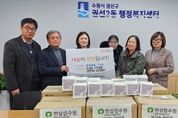 [ 중앙뉴스미디어 ] 수원시 권선구 금곡동은 지난 28일 ㈜케이티스포츠로부터 김장 나눔 행사를 위한 후원금 100만원을 전달받았다고 밝혔다. 이번에 기부된 성금은 김치를 구입하는 데에 사용됐으며, 구입한 김장김치는 지역 내 취약계층 가구에 직접 전달됐다. 이호식 대표이사는 “이번 기부를 통해 지역의 어려운 이웃들에게 실질적인 도움이 되길 바란다며 앞으로도 지역사회와 함께하는 다양한 나눔 활동을 지속적으로 이어가겠다”라고 말했다. 장성임 금곡동장은 “㈜케이티스포츠에서 김장 나눔을 위해 후원금을 전달해 주셔서 감사드린다며, 이번 후원으로 마련된 김장김치가 취약계층의 겨울나기에 큰 도움이 될 것”이라며 “앞으로도 주민들이 따뜻한 겨울을 보낼 수 있도록 지원을 이어가겠다”라고 전했다.