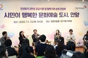 [ 중앙뉴스미디어 ] 안양시는 13일 오전 10시 30분 평촌아트홀 1층 카페 아트림에서 ‘시민이 행복한 문화예술 도시, 안양’을 주제로 (재)안양문화예술재단과 민선 8기 3주년 공공·협력기관 순회 간담회를 개최했다. 이번 간담회는 민선8기 3주년을 맞아 안양시 문화예술 정책의 주요 성과를 공유하고, 현장 예술인과 시민의 의견을 직접 청취하기 위해 마련됐다. 행사에는 안양 지역 예술인과 문화단체 관계자, 시민 등 120여 명이 참석해 안양의 문화예술 비전과 발전 방향에 대해 활발한 소통의 시간을 가졌다. 간담회에서는 ▲시민이 주인공이 되는 ‘안양춤축제’ ▲생활문화로 피어나는 ‘마을축제 지원사업’ ▲지역·청년예술인 창작활동 지원 ▲안양박물관과 공공예술프로젝트(APAP) 등 시민이 함께 만들어가는 다양한 문화예술 사례가 소개됐다. 안양춤축제는 안양만의 축제가 아니라 관광형 축제로 거듭나고 있다. 지난 9월 3일간 열린 축제에는 총 14만2,000여명이 참여했는데, 이 중 40%가 타 시도민으로 추산된다. 춤축제 기간 열린 유스클럽챔피언십의 한 고등학생 참가자는 “대회 분위기가 생각보다 훨씬 뜨거웠고 행복했다”며 “