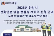 [ 중앙뉴스미디어 ] 안성시는 올해 ‘건축안전 맞춤 컨설팅 서비스(노후 마을회관 및 경로당 안전점검)’를 시행한다고 밝혔다. 건축안전 맞춤 컨설팅 서비스는 관련 법령상 정기 점검 의무가 없어 정확한 실태 진단과 안전 취약 요소 파악에 어려움이 있는 소규모 노후 마을회관 및 경로당을 대상으로 안전점검을 실시해, 건물 노후화로 인한 안전사고를 예방하고 시민의 안전한 생활환경 조성에 기여하고자 시행하는 사업이다. 점검 대상은 '건축물관리법' 제15조에 따른 소규모 노후 건축물 점검 대상 중 안전에 취약하거나 재난의 위험이 있다고 판단되는 마을회관 및 경로당이다. 주요 점검 항목은 ▲ 건축물 주요 부재의 구조적 균열과 변형 상태 ▲ 건축물 비구조체 결함 사항 ▲ 주변 축대, 옹벽, 담장 등의 안전상태 등이며, 점검자가 직접 현장을 방문해 육안점검 방식으로 진행된다. 점검을 희망하는 마을회관 및 경로당의 소유자 또는 관리자는 신청서를 작성해 안성시청 건축과에 방문 접수하거나 등기우편으로 접수할 수 있으며, 신청은 연중 상시 가능하다. 점검 후에는 건축물 관리자에게 점검 결과와 함께 보수·보강 등