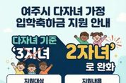[ 중앙뉴스미디어 ] 여주시는 저출산 극복과 양육 부담 경감을 위해 다자녀 가정 기준을 3자녀 이상에서 2자녀 이상으로 확대하고 오는 3월부터 다자녀 가정 입학축하금 지원 신청을 받는다고 밝혔다. 다자녀 가정 입학축하금 지원사업은 초‧중‧고등학교 입학생의 교육비 부담 완화를 위해 기존부터 시행해온 사업으로 여주시는 '여주시 출산장려 및 다자녀 가정 양육 지원에 관한 조례' 개정을 통해 다자녀 가정 기준을 2자녀 이상 가정으로 완화함에 따라 더 많은 가정이 혜택을 받을 수 있게 됐다. 다자녀 가정 입학축하금의 지원 대상은 현재 여주시에 주민등록을 두고 거주하는 다자녀 가정의 초‧중‧고등학교 입학생이며 입학생 1인당 20만원의 여주시 지역화폐로 1회 지급한다. 신청기간은 2026년 3월 3일부터 11월 30일까지로 보호자가 주소지 읍면동 행정복지센터를 방문하거나 정부24를 통해 온라인으로 신청할 수 있고 대상자 확인 후 신청 다음 달 15일 이내에 지급된다. 아울러 여주시는 다자녀 가정 입학축하금 외에도 다자녀장려금, 영유아 다자녀 가정 난방비 지원 등 다양한 다자녀 지원사업을 추진하고 있으며, 다자녀