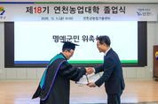 [ 중앙뉴스미디어 ] 연천군농업기술센터는 지난 5일 ‘제18기 연천농업대학 졸업식’을 성황리에 개최했다. 올해 연천농업대학은 스마트농업과, 농산업창업과 2개 과정으로 운영됐으며 총 41명이 교육에 참여했다. 스마트농업과는 스마트농업 분야 전문가를 중심으로 미래농업 관련 이론교육, 현장견학, 실습교육 등을 체계적으로 추진했으며, 스마트팜 정밀시설 도입을 통해 농가소득 증대에 기여하는 것을 목표로 운영됐다. 농산업창업과는 전자상거래, 경영, 세무, 스마트스토어 이론 및 실습뿐 아니라 SNS 동영상 촬영·편집 등 다양한 콘텐츠 기반 교육을 병행하며 현장 중심 교육을 강화했다. 교육기간은 3월 25일부터 11월 20일까지였으며, 스마트농업과 20명, 농산업창업과 19명, 총 39명의 졸업생이 1년간의 교육과정을 마쳤다. 연천군 관계자는 “제18기 연천농업대학 졸업을 진심으로 축하드리며, 대학에서 쌓은 학습역량을 바탕으로 연천 농업발전의 중심 역할을 해주시길 기대한다”고 말했다.