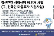 [ 중앙뉴스미디어 ] 평택시에서는 2025년 전국민 마음투자 지원사업의 효과성을 평가하고 서비스 질적 향상을 도모하기 위하여 서비스 이용 시민을 대상으로 만족도 조사를 진행했다. '전국민 마음투자 지원사업'은 우울·불안 등 정서적 어려움이 있는 시민에게 대화 기반의 심리상담 이용권(바우처) 서비스를 총 8회기 지원하는 국가 정신건강 지원사업이다. 평택시는 2025년 한해 965명의 시민이 심리상담 서비스를 이용했으며, 지난 1월 5일부터 18일까지 이용자 전원을 대상으로 익명으로 진행한 만족도 조사에서 269명의 이용자가 응답했고, 서비스 전문성과 만족도 분야 등 총 10개 문항에서 100점 만점에 평균 90.3의 높은 점수로 긍정적인 평가를 나타냈다. 특히 서비스 재이용 의사 여부를 묻는 문항에 91.8점으로 가장 높은 평가를 받았고, 타인에게 서비스 추천 여부 91.7점, 상담 결과 정신건강에 도움이 됐다는 90.6점으로 나타났다. 이용 소감으로는 “속마음을 털어놓으니 마음의 짐이 줄어든거 같다”, “불안이 사라지고, 안정감을 되찾았다”, “화를 다스리고 다른 사람들과 화합하는 방법을 깨우치게