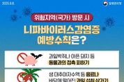 [ 중앙뉴스미디어 ] 평택시는 최근 인도(서벵골주)에서의 니파바이러스 감염증 환자가 발생하여 해당 국가를 방문하는 시민들에게 감염 예방을 위한 각별한 주의를 당부했다. 니파바이러스 감염증은 1998년 말레이시아에서 처음 보고된 인수공통감염병으로, 인도(누적 환자 104명, 사망 72명), 방글라데시(누적 환자 343명, 사망 245명) 등 아시아 지역에서 산발적으로 발생했고 발열, 두통, 근육통 등으로 시작하여 의식 장애 등 신경계 증상으로 악화되는 것으로 알려져 있다. 또한 치명률은 40~75%에 이르고 현재 치료제 및 백신이 없으므로 감염 예방이 매우 중요하다. 발생 국가 여행 시에는 ▲과일박쥐나 아픈 돼지 등 동물과의 접촉 피하기 ▲생 대추야자수액 등 오염된 음료나 바닥에 떨어진 과일 섭취 금지 ▲환자의 혈액·체액 접촉 피하기 ▲30초 이상 손 씻기 ▲씻지 않은 손으로 눈, 코, 입 만지지 않기 등의 예방수칙을 철저히 준수해야 한다. 귀국 후 14일 이내에 의심 증상 발생 시 질병관리청 또는 관할 보건소로 신고해야 한다. 평택시 송탄보건소 관계자는 “니파바이러스 감염증은 사망률이 높지만 개인 위생수칙을 철