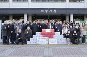 [ 중앙뉴스미디어 ] 의왕시가 새중앙교회로부터 크리스마스를 맞아 어려운 이웃을 돕기 위한 생필품 꾸러미 ‘사랑의 천사박스’ 1,004상자(약 4,000만 원 상당)를 기부받았다고 밝혔다. 시청 본관 앞 광장에서 열린 전달식에는 새중앙교회 황덕영 담임목사와 나문성·박재관 목사, 이칠수·신종범·김경화 장로 등 새중앙교회 관계자들이 참석해 따뜻한 나눔의 뜻을 함께했다. 새중앙교회 황덕영 담임목사는“크리스마스를 맞아 소외된 이웃들에게 사랑을 전하고자 하는 성도들의 마음을 모아 사랑의 천사박스를 준비했다”며“이 작은 정성이 어려운 이웃들에게 위로가 되고, 따뜻한 겨울을 보내는 데 도움이 되기를 바란다”고 말했다. 방경미 복지문화국장은“해마다 변함없이 나눔을 실천해 주시는 새중앙교회와 성도 여러분께 깊이 감사드린다”며“시에서도 소외되는 이웃이 없도록 지역사회를 더욱 세심하게 살피고, 촘촘한 복지 지원에 최선을 다하겠다”고 밝혔다. 한편, 이날 기부된 생필품 꾸러미는 경기사회복지공동모금회에 기탁 처리된 후, 관내 저소득층 가구에 전달될 예정이다.