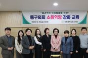 [ 중앙뉴스미디어 ] 인천 동구의회는 지난 19일 의회 세미나실에서 구의원과 의회사무과 공무원을 대상으로 소통 역량 강화 교육을 실시했다. 이번 교육은 이미지 컨설팅 및 커뮤니케이션 교육 전문강사인 김미선 강사를 초빙해 ‘언어적·비언어적 커뮤니케이션 능력의 활용 및 전략 수립’을 주제로 강의가 진행됐다. 김미선 강사는 이날 갈등 상황에서의 대화 기술과 정책 설명 시 설득력을 높이는 언어적 소통 기법을 소개했다. 아울러 의정활동 과정에서 주민에게 신뢰를 줄 수 있는 이미지 등 비언어적 소통 기법의 중요성도 강조했다. 또한 의원 개인별 이미지에 적합한 표정, 자세, 외형 등 다양한 전략을 제시하며 주민과의 긍정적 첫인상을 형성하고 소통의 신뢰도를 높일 수 있는 실질적인 방법을 안내했다. 유옥분 의장은 “의정활동에서의 소통 능력은 정책 메시지를 효과적으로 전달하는 중요한 역량”이라며, “이번 교육이 의원들이 주민과의 소통에서 신뢰를 구축하고, 의정활동을 보다 원활하게 수행하는 데 큰 도움이 될 것”이라고 말했다. [뉴스출처 : 동구의회]