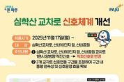 [ 중앙뉴스미디어 ] 파주시는 운정신도시 내 상습 정체가 발생하던 심학산 교차로와 산내마을 10단지 사거리, 산내공원 교차로 등 3개소에 대해 신호체계 개선을 우선 추진해 11월 17일부터 현장 적용을 완료했다고 밝혔다. 이번 개선은 출근시간마다 교차로 내부에서 차량이 멈춰 모든 방향의 통행이 막히고, 좌회전 대기 공간이 부족해 자유로 방면 직진 흐름까지 지연되며 인근 단지 차량의 진출입도 어려웠던 문제를 해결하기 위한 조치다. 시는 이러한 구조적 정체를 해소하기 위해 기존 양방향 직진 위주로 운영되던 신호체계를 직·좌회전 병행 방식으로 바꾸고, 3개 교차로의 신호 연동을 재정비했다. 또한 구간 전체의 흐름이 끊기지 않도록 ‘스마트 교차로 시스템’을 활용해 신호체계를 최적화했다. 양성원 첨단도시정보과장은 “심학산 교차로는 운정신도시 주민들이 서울 등으로 이동하는 중요한 지점”이라며, “이번 신호체계 개선이 실질적인 소통 개선으로 이어질 수 있도록 지속적으로 점검하고 안정적인 운영을 위해 최선을 다하겠다”라고 밝혔다. 시는 적용 이후에도 교통 흐름, 보행 대기시간, 민원 등을 지속적으로 검토해 필요한