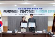 [ 중앙뉴스미디어 ] 강남구의회는 10일 연천군의회를 방문해 지방의회간 우호 증진 및 공동발전을 위한 친선교류 강화를 논의했다. 친선결연 협약식은 연천군 임시회 본회의가 종료한 후 진행했으며 이호귀 의장·복진경 부의장·이동호 운영위원장·손민기 의원이 참석해 친선결연 논의 및 상호 협력 추진을 위한 차담회를 진행하며 문화시설 등을 시찰했다. 주요 협약 내용으로 지역경제 활성화를 위한 교류 추진, 기관 간 협력 활동을 통한 정보교환 및 상호발전 방안 협의, 기관 간 공동이익을 위한 분야별 협력 추구, 그 밖에 상호 발전을 위해 필요한 사항이 논의됐다. 이호귀 의장은 답사를 통해“연천군이 지역 발전과 생태 보호에 힘써온 노력에 진심 어린 존경을 표한다”라며, “지방자치 발전과 지역 간 상생의 모범을 만들기 위해 연천군의회와 더욱 긴밀히 협력하겠다”라고 말했다. [뉴스출처 : 강남구의회]