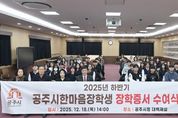 [ 중앙뉴스미디어 ] (재)공주시한마음장학회(이사장 최원철)는 지난 18일 시청 대백제실에서 2025년 하반기 장학생을 대상으로 장학증서 수여식을 열었다고 밝혔다. 이번에 성적우수장학금과 공주사랑장학금 분야에서 선발된 장학생은 모두 85명이며, 이 가운데 46명이 수여식에 참석해 장학증서를 받았다. 수여식에는 장학회 임원과 학부모 등이 함께 참석해 장학생들의 성취를 축하했다. 성적우수장학금은 고등학생 25명(1인당 80만 원)과 대학생 40명(1인당 150만 원) 등 모두 65명을 선발했다. 고등학생은 직전 학기 과목별 석차가 3등급 이내인 과목의 비율이 70% 이상인 학생을 대상으로 했으며, 대학생은 12학점 이상을 이수하고 평균 평점 4.0 이상(4.5 만점 기준)인 학생을 선발했다. 선발 대상은 공주 지역의 초중고에 재학 중이거나 졸업한 학생으로, 공고일을 기준으로 장학생 본인 또는 보호자가 공주시 안에 1년 이상 계속해 주민등록을 두고 있어야 한다. 공주사랑장학금은 다른 지역에서 1년 이상 주민등록을 두고 있다가 공주시로 전입한 지 6개월 이상 지난 국립공주대학교와 공주교육대학교