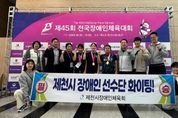 [ 중앙뉴스미디어 ] 제45회 전국장애인체육대회에 출전한 제천시장애인선수단이 눈부신 성적을 기록하며 충청북도가 목표했던 종합 4위 달성에 크게 기여했다. 지난 10월 31일부터 11월 5일까지 6일간 부산광역시 일원에서 개최된 이번 대회에 제천시선수단은 충청북도를 대표해 역도 등 총 11개 종목 31명이 참가해 금메달 8개, 은메달 4개, 동메달 2개를 획득하는 쾌거를 달성했다. 역도 백경옥, 유우정 선수는 여자 50kg급, 72kg급 데드리프트, 스쿼트 종합에서 한국신기록을 기록했다. 특히 역도 백경옥 선수는 이번 대회까지 3년 연속 한국신기록을 새로 썼다. 또한 육상 이영애 선수는 여자 원반, 창, 포환던지기에서 3관왕에 오르며 충북 육상의 위상을 높였다. 이밖에도 수영, 축구, 역도에서 은·동메달을 추가하며 이번 대회에서 제천시장애인선수단의 실력을 유감없이 발휘했다. 김창규 제천시장(제천시장애인체육회장)은 “제천을 대표해 끊임없이 노력해주신 선수단 여러분께 진심으로 감사드린다”며, “제천시 장애인 체육 발전과 더불어 제천시 장애인 복지 개선을 위해 지속적으로 노력해 나가겠다”고 전