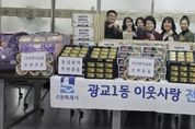 [ 중앙뉴스미디어 ] 영통구 광교1동은 지난 2월 11일, 설 명절을 앞두고 관내 단체와 기관의 따뜻한 나눔이 이어지는 가운데 ‘설 명절 이웃나눔 전달식’을 개최했다고 밝혔다. 광교1동에 따르면, 이번 전달식에는 동남용역이 후원한 햄 40세트와 시립광교동어린이집에서 정성껏 준비한 생필품 꾸러미 40박스가 전달됐다. 또한 광교1동 지역사회보장협의체에서 마련한 후원금과 광교1동 공동모금회를 통해 준비된 떡국떡, 전, 나물, 과일 등 명절 음식도 함께 전달돼 뜻깊은 의미를 더했다. 특히 이번 나눔은 기업과 보육기관, 지역 복지단체가 한마음으로 참여해 설 명절을 앞두고 소외되기 쉬운 이웃들에게 따뜻한 정을 전하며 지역사회에 훈훈한 분위기를 조성했다. 광교1동은 이날 전달된 성금과 물품을 저소득 가정과 취약계층, 홀몸 어르신 등 도움이 필요한 이웃들에게 전달해 따뜻하고 풍성한 설 명절을 보낼 수 있도록 지원할 예정이다. 송숙영 광교1동장은 “설 명절을 맞아 어려운 이웃을 위해 소중한 정성을 모아주신 모든 분들께 깊은 감사의 말씀을 드린다”며, “전달받은 성금과 물품은 꼭 필요한 이웃들에게 정성껏 전달해 지역