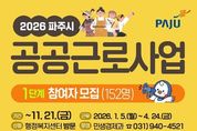 [ 중앙뉴스미디어 ] 파주시는 오는 21일까지 2026년 1단계 공공근로사업 참여자 152명을 모집한다고 밝혔다. 공공근로사업은 청년, 여성, 중장년 등 취업 취약계층에게 한시적인 일자리를 제공하고, 장기 실직자에게 재취업 도전의 발판을 마련하는 데에 목적이 있다. 근무 분야는 ▲공공서비스 ▲전산화 ▲환경 정비 등 3개 분야, 147개 사업으로 구성돼 있다. 참여 자격은 ▲사업 개시일 기준 18세 이상 ▲가구소득이 기준중위소득 70% 이하 ▲재산 4억 원 이하인 파주시민이며, 파주시 등록 외국인도 신청할 수 있다. 참여 희망자는 모집 기간 내 거주지 행정복지센터를 방문해 신청서와 구비서류를 제출해야 하며, 선발 여부는 12월 말 개별 통보될 예정이다. 선발된 인원들은 내년 1월 5일부터 4월 24일까지 근무하게 되며, 주요 근무조건으로는 ▲시간당 임금 1만 2,070원 지급 ▲4대 보험 가입 ▲주휴수당 및 연차 유급휴일 제공 등이 있다. 이이구 민생경제과장은 “내년도 공공근로 일자리는 최근 어려워진 경제 상황을 고려해 최대한 많은 인원을 선발함으로써 민생경제 활성화에 기여하