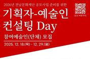 [ 중앙뉴스미디어 ] (재)순천문화재단은 오는 29일까지 ‘2026 기획자-예술인 컨설팅 Day(이하 컨설팅 Day)’에 참여할 전문예술인(단체)을 공개 모집한다. ‘컨설팅 Day’는 지난 6년간 운영해 온 ‘지역예술인·기획자 매칭 지원사업’을 현장 상황에 맞춰 개편한 프로그램이다. 재단은 그간의 사업 수행 과정을 통해 기획자 참여의 필요성과 효과성이 충분히 입증됐으며, 이제는 지역 문화예술 현장에서도 자체적으로 예술인과 기획자가 협력하는 분위기가 조성됐다고 판단해 사업 방식을 변경하게 됐다. 이번 개편의 주된 배경에는 전남문화재단 지원제도의 특징도 반영됐다. 문학, 시각, 공연 등 기초지원 분야의 접수 양식이 비교적 간단해졌고, 집중지원사업의 경우 기획자의 기획비가 예산으로 인정되기 때문이다. 이에 재단은 직접적인 인건비 지원보다는 민간의 자율적인 네트워킹을 통해 협업하는 구조를 만드는 것이 장기적으로 바람직하다고 판단했다. 따라서 2026년부터는 예술인들이 작성한 사업계획서 초안을 바탕으로 전문가의 집중 컨설팅을 받아 내용을 보완하고 완성도를 높이는 실질적인 지원에 초점을 맞출 계획