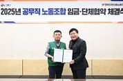 [ 중앙뉴스미디어 ] 시흥시는 지난 11월 26일 시청 다슬방에서 교섭대표 노동조합인 전국민주연합노동조합 시흥지부와 2025년도 공무직 임금ㆍ단체협약을 체결했다. 올해 교섭은 지난 9월 10일 상견례를 시작으로 약 2개월간 총 7차례의 실무교섭을 통해 진행됐으며, 상호 입장을 조율하기 위한 세부 논의를 거쳐 임금 협약과 단체협약 내용이 확정됐다. 임금 및 단체협약에는 ▲2024년 임금 총액 대비 3% 인상 ▲민원 업무 수당 및 위험 근무수당 신설 ▲임금 테이블 통합(사무보조 직군과 영양사ㆍ의료급여 등 전문ㆍ단순 노무 직군을 ‘노무원’으로 통합) ▲경력 인정 기준 신설 ▲휴직 사유 신설 등 다양한 개선 사항이 포함됐다. 이번 합의는 공무직 근로자의 복리 증진과 근무 여건 향상을 위해 노사 양측이 지속적으로 의견을 조율하며 마련한 것으로, 안정적이고 효율적인 근무 환경을 만드는 데 중요한 기반이 될 것으로 기대된다. 김기범 전국민주연합노동조합 시흥지부장은 “같은 시흥시 직원으로서 상생의 자세로 한 방향을 바라볼 수 있도록 협력해 준 시흥시에 감사드린다”라며, “이번 협약을 통해 조합원들이 더 안정적인