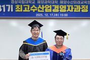 [ 중앙뉴스미디어 ] 경상국립대학교 해양과학대학은 12월 17일 오후 해양과학대학 해양누리관에서 ‘2025년 제31기 최고수산업경영자과정 수료식’을 개최했다. 이날 수료식에서는 해양과학대학 이정석 학장, 최고수산업경영자과정 박주동 교학부장을 비롯해 경상남도 송상욱 수산정책국장, 한국수산업경영인경상남도연합회 곽영효 회장 등 주요 내빈이 참석해 수료생들을 축하·격려했다. 이날 행사에서는 32명이 수료했다. 이정석 학장은 “해양수산 분야에 특화된 최고수산업경영자과정 교육을 통해 수료생들이 고수온, 적조, 수산물 소비 위축 등의 어려움을 극복하고, 우리나라 어선업, 양식업, 수산가공 및 유통 산업에서 도전정신을 가지고 기회를 펼쳐보기를 기대한다.”라고 말했다. 이날 수료식 시상식에는 △총장 표창: 이준모, 강철훈, 송유명 △해양수산부장관상: 최정선 △경상남도지사상: 최원석, 박정열, 백나영, 박우석 △해양경찰청장 표창: 이경미 △통영해양경찰서장 표창: 홍종철 △경상국립대학교 총동문회장상: 한재영, 박상욱 △한국수산업경영인 중앙연합회장 표창: 최진, 나해찬, 류승훈 △해양과학대학장 표창: 김석재, 차동수,