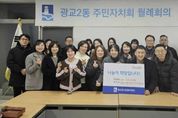 [ 중앙뉴스미디어 ] 수원시 영통구 광교2동은 지난 5일, 광교2동 주민자치회가 이웃돕기 성금 100만원을 광교2동 행정복지센터에 전달했다고 밝혔다. 광교2동 주민자치회는 평소 이웃돕기 활동을 비롯해 지역사회 나눔 문화 확산과 주민 복지 증진을 위한 다양한 활동을 지속적으로 추진해 오고 있으며 이번 성금은 설 명절을 맞아 어려운 이웃이 소외되지 않도록 주민자치회 회원들의 자발적인 참여로 마련됐다. 김병직 광교2동 주민자치회장은 “설 명절을 맞아 주변의 어려운 이웃을 위해 뜻을 모아준 주민자치회원들께 감사드린다”며 “앞으로도 지역사회의 어려운 이웃을 위한 나눔 활동을 꾸준히 이어가겠다”고 밝혔다. 이날 전달된 성금은 광교2동 행정복지센터를 통해 관내 취약계층 및 위기가구 지원에 사용될 예정이다.