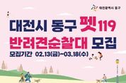 [ 중앙뉴스미디어 ] 대전 동구(구청장 박희조)는 주민과 반려견이 함께 지역 안전을 지키는 ‘동구 펫(PET)119 반려견순찰대’ 사업을 본격 추진하며, 참여 신규 대원을 모집한다고 13일 밝혔다. ‘반려견순찰대’는 반려견과의 일상적인 산책 활동에 순찰 기능을 접목한 주민 참여형 범죄예방 프로그램으로, 산책 중 범죄 의심 상황이나 화재·응급 등 위험 요소를 발견하면 112·119 등에 신고하는 역할을 담당한다. 모집 기간은 이달 13일부터 다음 달 18일까지이며, 신청은 홍보물 내 정보무늬(QR코드) 또는 반려견순찰대 공식 누리집을 통해 가능하다. 선발 심사는 다음 달 21일 오전 10시 동구 반려동물놀이터(우송대)에서 진행되며, ▲보호자의 통제력 ▲반려견의 사회성 등을 종합적으로 평가해 약 50팀을 최종 선발할 계획이다. 선발된 순찰대는 다음 달 28일 용수골 어린이공원에서 발대식을 갖고, 오는 12월까지 관내 주요 지역에서 순찰 활동을 펼칠 예정이다. 특히, 활동 대원에게는 임명장 수여와 순찰 용품이 지급되며, 자원봉사 실적 인정과 우수 활동팀 표창 등 다양한 혜택도 함께 제공된다.