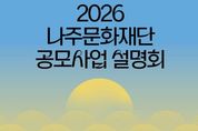 [ 중앙뉴스미디어 ] 나주문화재단이 2026년도에 추진할 문화사업 전반을 시민과 공유하고 공모 참여 기회를 확대하기 위해 설명회를 개최한다. 나주문화재단은 오는 2월 24일 나빌레라문화센터 소극장에서 ‘2026년 나주문화재단 통합 공모사업설명회’를 연다고 13일 밝혔다. 이번 설명회는 지역민과 예술인을 대상으로 재단의 연중 사업을 종합적으로 안내하고 공모사업 참여를 독려하기 위해 마련했다. 재단은 2026년 추진 예정 사업 전반과 함께 총 5건의 공모사업 개요, 신청 방법, 서식 작성 요령 등을 상세히 설명할 계획이다. 설명 대상 사업은 나주형 커뮤니티 발굴사업 ‘취향살롱’, 지역문화 활성화 지원사업, 나빌레라문화센터 전시공간 지원 공모, 나빌레라문화센터 창작실 입주작가 공모, 미디어 콘텐츠 촬영 장소 지원 등 5건이다. 설명회에서는 사업 안내와 더불어 현장 질의응답 시간을 운영해 시민과 예술인의 이해도를 높이고 다양한 의견을 수렴할 예정이다. 이를 통해 재단과 지역 문화 주체 간 소통을 강화하고 정책 반영의 기반을 마련한다는 방침이다. 특히 직장인 등 다양한