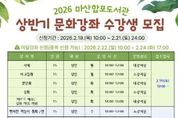 [ 중앙뉴스미디어 ] 창원특례시 마산합포도서관에서는 시민들에게 다양한 평생학습 기회를 제공하고자 ‘2026년 상반기 문화강좌’ 수강생을 2월 19일부터 2월 24일까지 마산합포도서관 누리집에서 온라인(선착순)으로 모집한다. 문화강좌는 성인 대상 9개 강좌(행복한 책놀이 동화구연, 문인화, 아크릴화, 서예, 유화, 타로로 배우는 힐링 마음 여행, 민화, 연필화, 마음 수업)와 어린이를 위한 2개 강좌(역사 교실, 생각이 자라는 만들기 교실)로 운영되며, 3월 3일부터 5월 12일까지 10주 동안 진행된다. 공명숙 마산합포도서관과장은 “문화강좌를 통해 시민들이 자기계발과 문화예술을 향유할 수 있는 기회를 갖고, 도서관에서 즐거운 문화 경험과 창의적인 시간을 보내시길 바란다”며 많은 관심과 참여를 당부했다. 자세한 사항은 마산합포도서관 누리집 공지사항을 참고하거나 마산합포도서관팀으로 문의하면 된다. [뉴스출처 : 경상남도창원시]