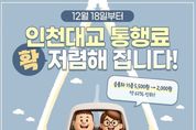 [ 중앙뉴스미디어 ] 12월 18일부터 인천대교 통행료 확 저렴해 집니다! - 승용차기준 5,500원 → 2,000원(약 63% 인하!) ■ 언제부터, 얼마나 달라지나요? 2025년 12월 18일 00시 부터 시행 인천대교 통행료 평균 인하폭은 63%… ■ 차종별 통행료 한눈에 보기 · 경차: (인하 전) 2,750원 → (인하 후) 1,000원(▼1,750원) · 소형: (인하 전) 5,500원 → (인하 후) 2,000원(▼3,500원) · 중형: (인하 전) 9,400원 → (인하 후) 3,500원(▼5,900원) · 대형: (인하 전) 12,200원 → (인하 후) 4,500원(▼7,700원) ■ 차종 한눈에 구별하기 (경차) · 배기량 1,000cc 미만 · 길이 3.6m·너비 1.6m·높이 2.0m 이하 (소형) · 승용차, 16인승 이하 승합차 · 2.5톤 미만 화물차 · 2축 차량 / 윤폭 279.4mm 이하 (중형) · 17인승 이상 버스 · 2.5톤 이상~10톤 미만 화물차 · 2축 차량 / 윤폭 279.4mm 초과 (대형) · 10톤 이상 대형 트럭 ·