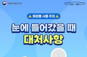 [ 중앙뉴스미디어 ] ■ 스킨케어&세정 제품도 눈 주의! - 스크럽 세안제 알갱이가 눈에 들어가면 물로 씻고, 이상 시 병원 상담 - 팩 제품 눈 주위는 피해서 사용 - 샴푸/세정제 눈에 들어가면 즉시 물로 충분히 세척 - 손·발 피부연화 제품(*우레아 포함) 눈, 코, 입 등 점막에 닿지 않게 주의 - 제모제(*치오글라이콜릭애씨드 함유) 눈에 들어갔을 경우 미지근한 물 + 붕산수(약 2%)로 헹구기 ■ 머리카락&눈 주변 제품 반드시 주의! - 두발용, 두발염색용, 눈 화장용 제품류 : 눈에 들어가면 즉시 씻기 - 헤어 퍼머넌트 웨이브/스트레이트너 : 눈, 얼굴, 목 등에 약액이 닿지 않게 주의 묻으면 즉시 세척 - 속눈썹 퍼머넌트 웨이브 제품 : 눈과 접속 시 흐르는 물 또는 식염수로 씻기 - 염모제 등 산화제 제품 : 눈에 접촉 시 즉시 물로 세척 ■ 에어로졸·선크림은 분사 방식도 중요해요. - 고압가스를 사용하는 에어로졸 제품 : 눈 주위 및 점막에 직접 분사 금지 - 스프레이형 자외선 차단제 : 손에 덜어 얼굴에 바를