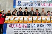 [ 중앙뉴스미디어 ] 지난 11일, 수원시 권선구 세류2동은 설 명절을 맞이하여 사랑 나눔 전달식을 개최했다. 이날 마련된 후원 물품은 취약계층 약 379 가구에 직접 전달될 예정으로 지역사회에 사랑이 전해지는 명절이 될 것으로 기대된다. 이번 전달식에는 세류2동 주민자치회, 통장협의회, 새마을부녀회, 새마을문고, 바르게살기위원회, 자유총연맹, 체육진흥회, 방위협의회, 지역사회보장협의체 등 9개 단체의 단체장과 ㈜대일실업, ㈜광신이 참여했다. 이와 함께 MG세화새마을금고, ㈜에코월드, 영광광고기획 등 지역 내 여러 기관과 개인 후원자의 사랑 나눔도 더해져 행사에 의미를 더했다. 변영호 세류2동장은 “어려운 시기에 지역사회 관심으로 사랑 나눔에 참여해 주신 단체(기관)에 감사드리며, 앞으로도 유관 기관과 적극 협력으로 행복과 웃음이 피어나는 정겨운 세류2동을 만들기 위해 최선을 다하겠다”라고 말했다.